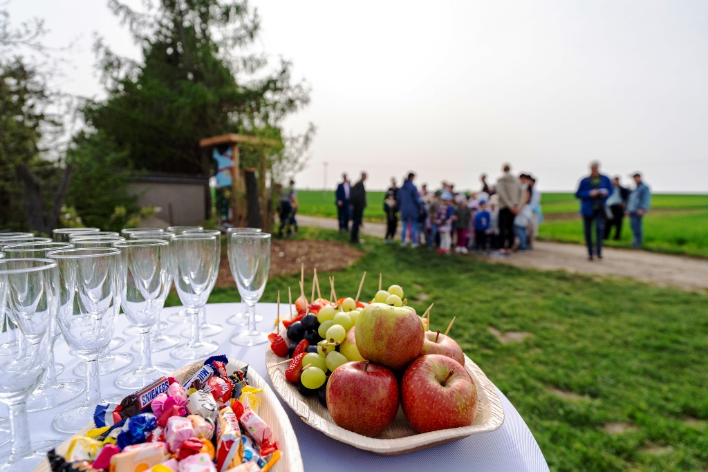 Der Lebensturm, dessen Rückwand bunt von den Kindern des „Schwalbennestes“ gestaltet wurde, wurde am 9. April feierlich bei einem Glas Sekt dem Ort übergeben. Er ist nach Niedernissa der zweite seiner Art in Erfurt.