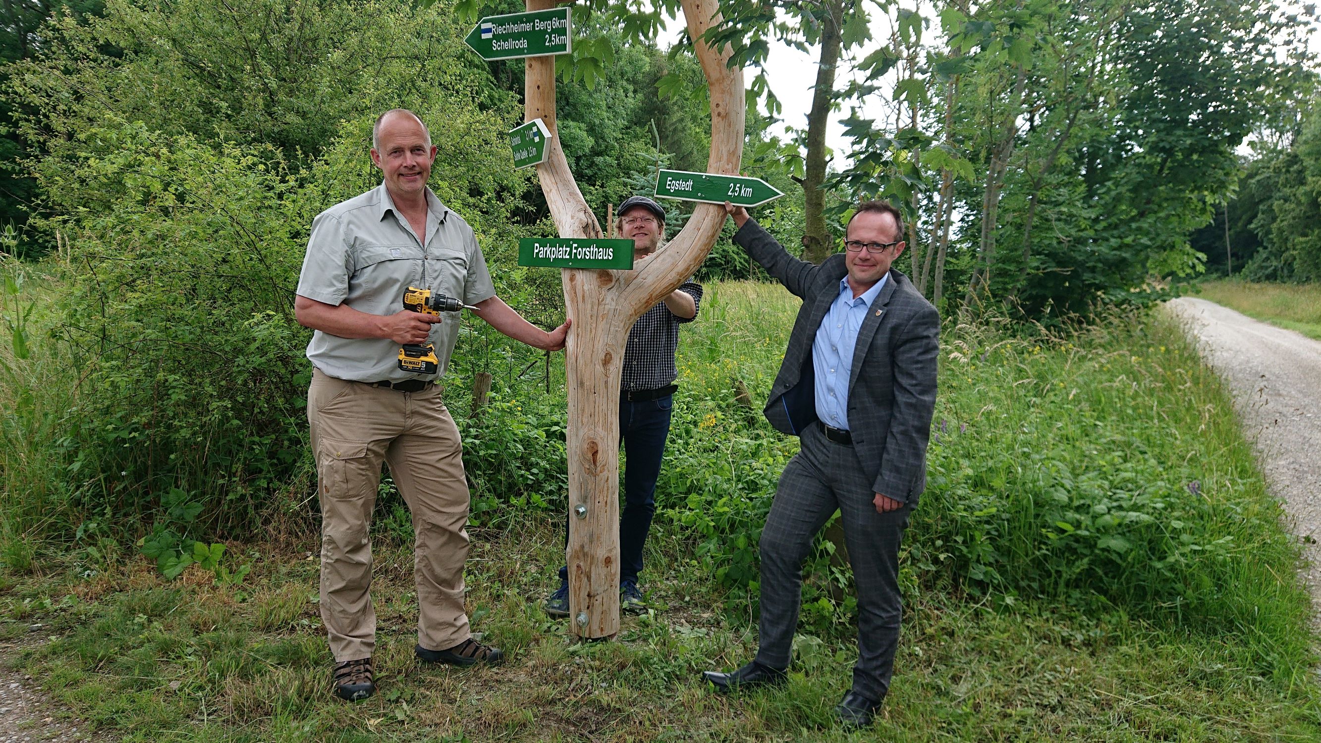 Im Forstamtsbereich Erfurt-Willrode sei diese Wanderroute aber nur eine von vielen, die auf insgesamt 517 laufenden Kilometern multifunktionaler Waldwege verlaufen, so die Förster. Diese Zahl habe eine aktuelle Wegeinventur ergeben, die dem Wegenetz im Forstamtsbereich auch einen im Vergleich zur letzten Aufnahme technisch besseren Erhaltungszustand bescheinige. „Richtig nutzbar für den Wanderer werden diese Wanderwege aber erst, wenn sie auch ausreichend beschildert sind“, ergänzen Ortsteilbürgermeister Christian Lünser und Jens Düring vom Umwelt- und Naturschutzamt der Stadt Erfurt. Und da sei man jetzt in Egstedt einen Schritt weitergekommen, auch wenn noch einiges zu tun sei.